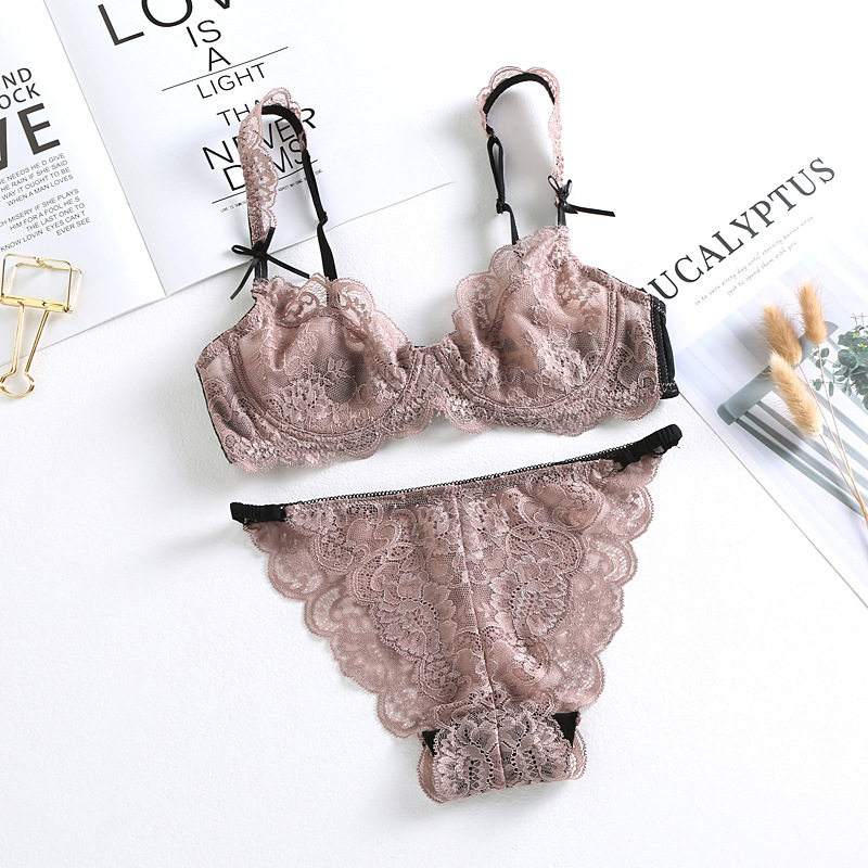 女性惑火辣少女性感文胸小胸聚拢情趣透明骚超薄蕾丝 胸罩内衣套装由