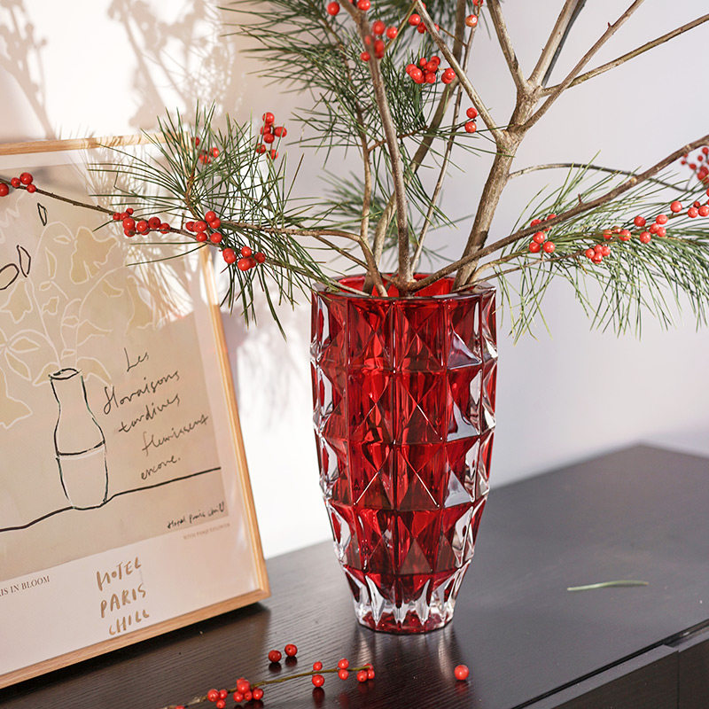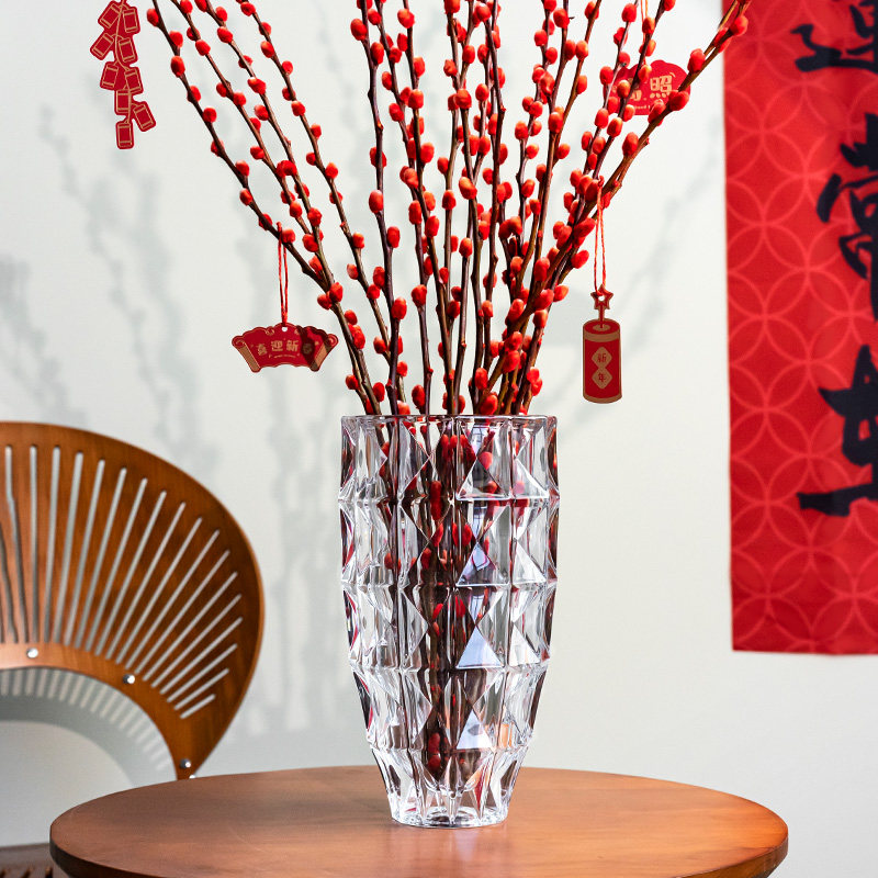 饰花器摆件 北欧轻奢水晶玻璃花瓶透明客厅酒店插花玫瑰百合鲜花装