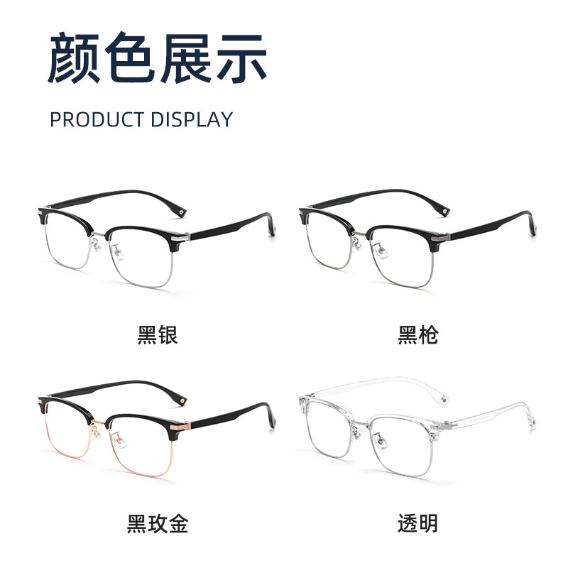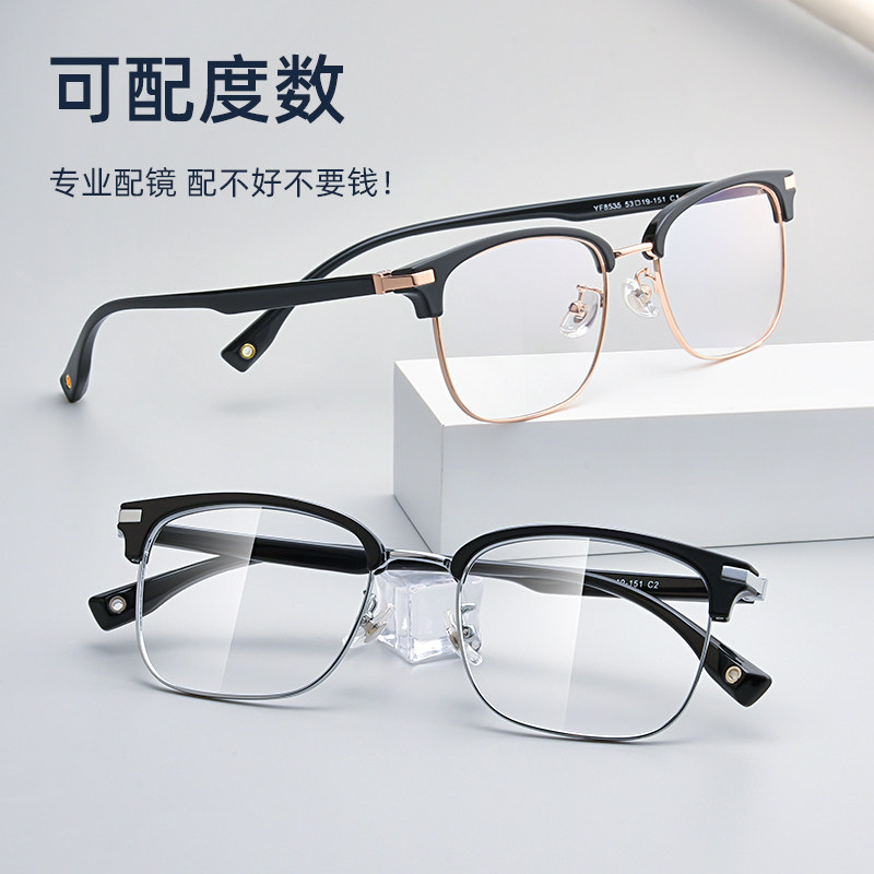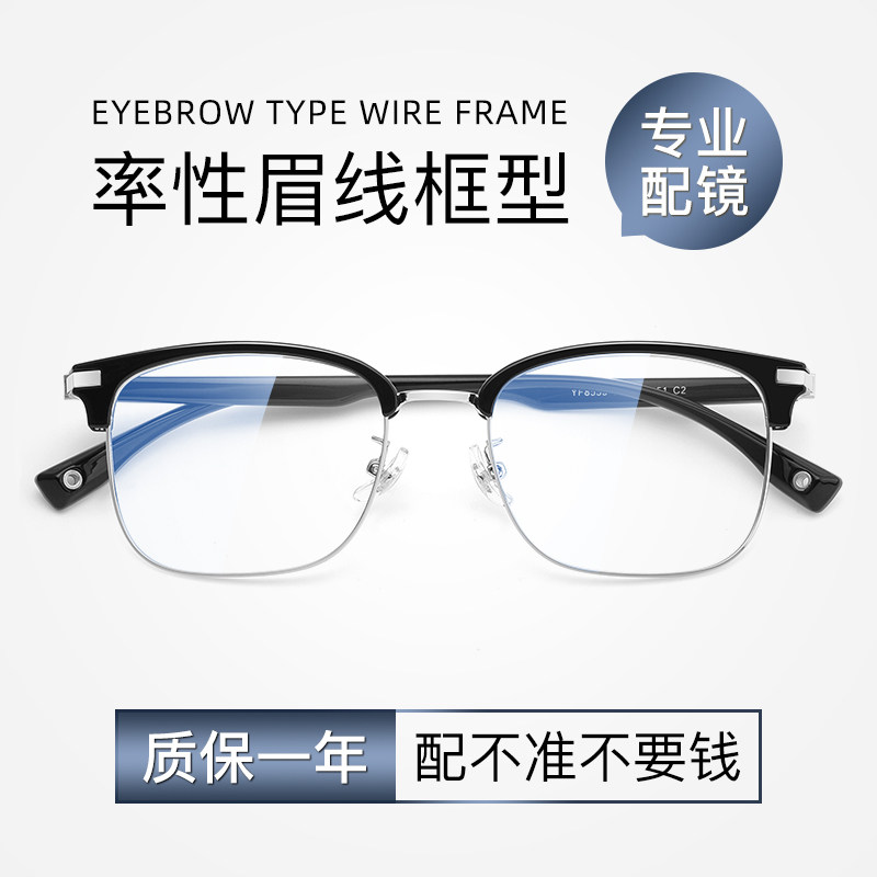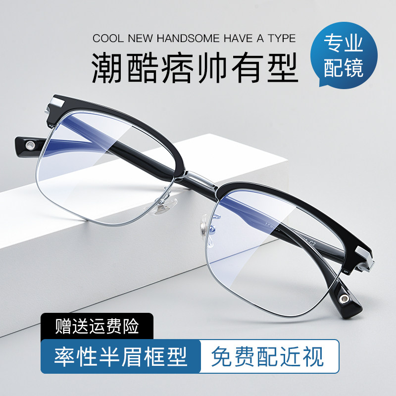 商务半框眼睛架定制成品光学镜可配度数近视框眼镜防蓝光 狂飙男士