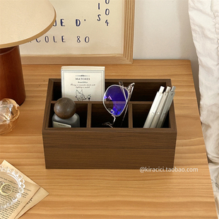 复古木质桌面分格收纳盒杂物化妆品整理置物盒长方形分隔储物盒由