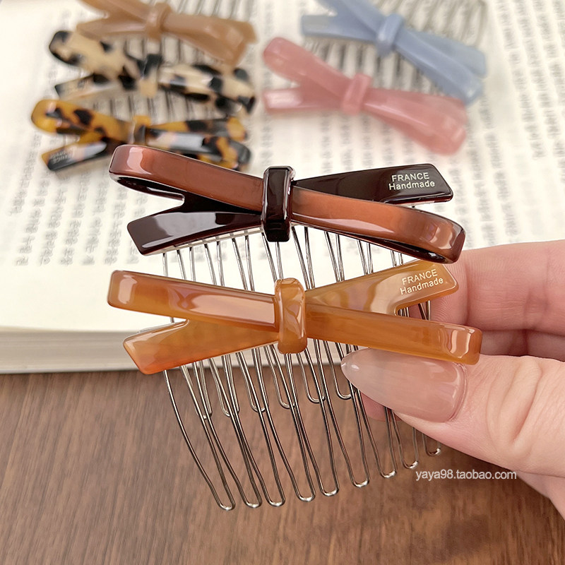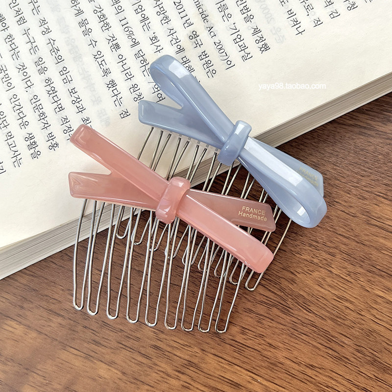 韩国France蝴蝶结发插刘海碎发梳公主头倒插梳盘发丸子头侧边发钗由