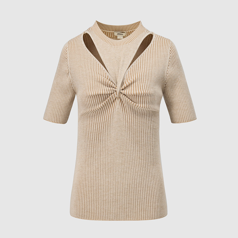 JASON 春夏新款 扭结镂空羊毛休闲百搭针织上衣套头衫 女
