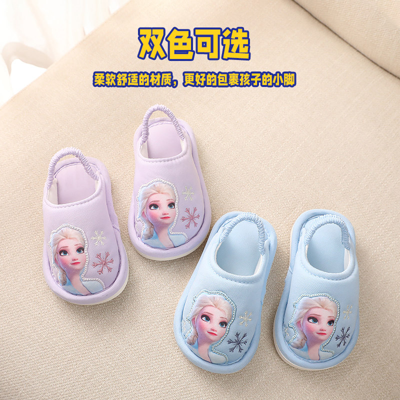 迪士尼儿童棉拖鞋 冬 春秋女童公主室内防滑3宝宝幼小童4岁家居拖鞋
