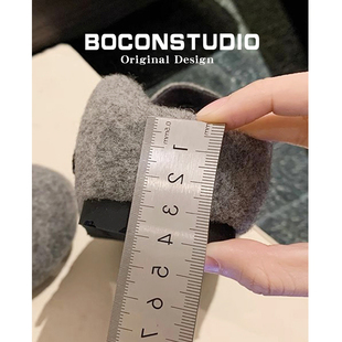 厚底博肯鞋 毛毡勃肯鞋 加绒女秋冬毛毛鞋 外穿东北棉鞋 子 灰色半拖鞋由