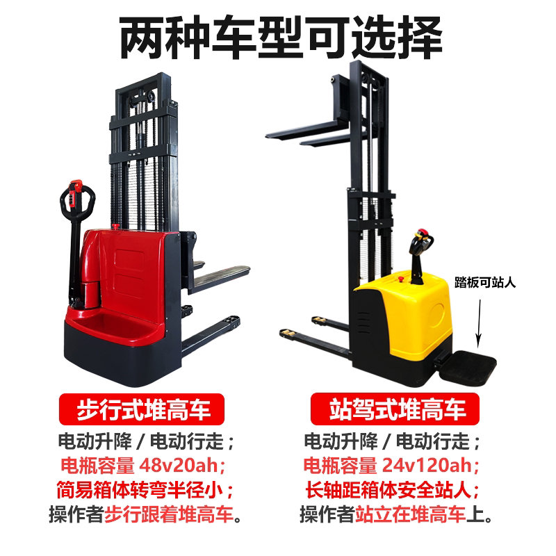 站驾插腿式 卸车2吨升高小型步行式 半全电动叉车1.5吨堆高车液压装