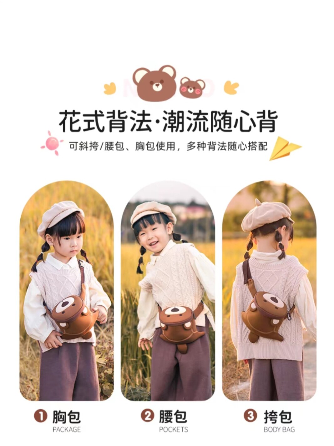 为您提供商品5岁男女孩可爱宝宝腰包 诺狐儿童包包迷你斜挎包幼儿园卡通小包1的详细介绍,