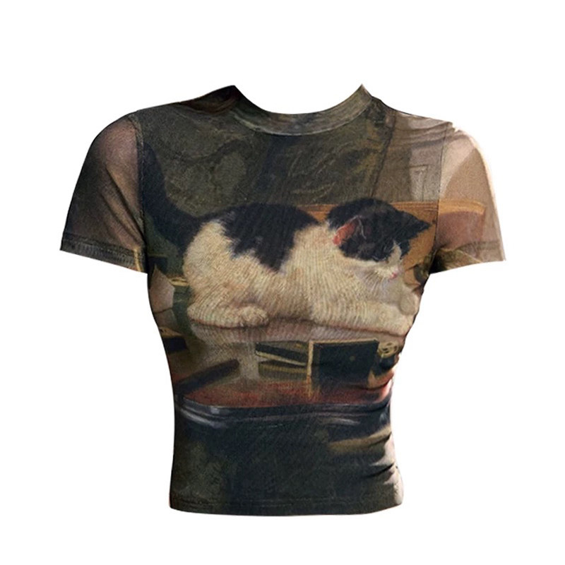 ⭐小红书推荐⭐辣妹小猫印花收腰弹力正肩T恤女半高领显瘦短款 小众上衣 DAIZZE,所属上衣分类,由淘宝网挑选推荐!小红书抖音网红同款!哪里有卖辣妹小猫印花收腰弹力正肩T恤女半高领显瘦短款 小众上衣 DAIZZE和多少钱质量怎么样✅。