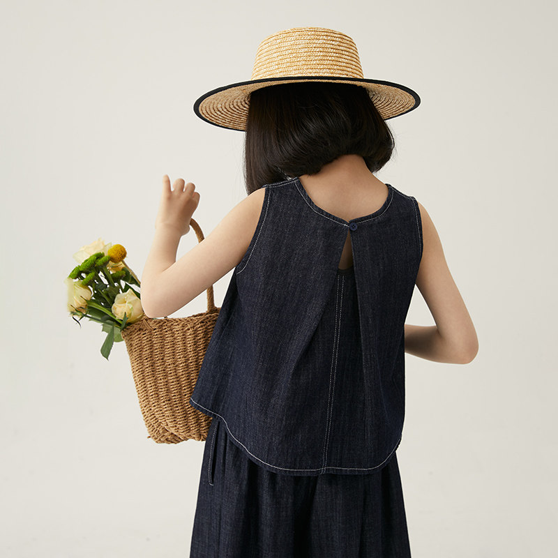 NNGZ夏季 洋气时髦儿童背心裙裤 宽松休闲童装 两件套 女童牛仔套装