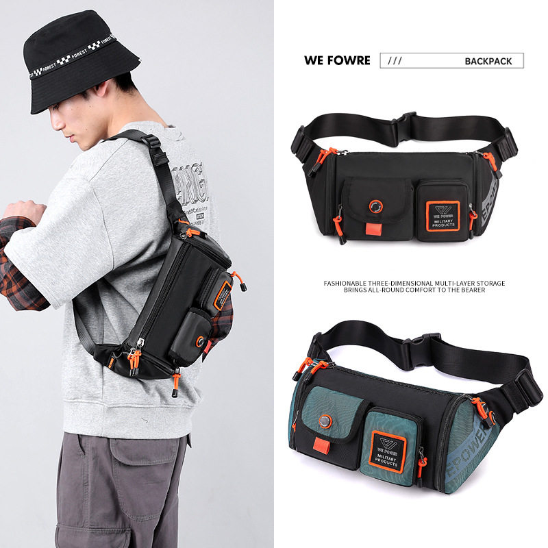 休闲机能防水胸包时尚 潮流单肩包斜挎男包大容量通勤腰包 男士 新款
