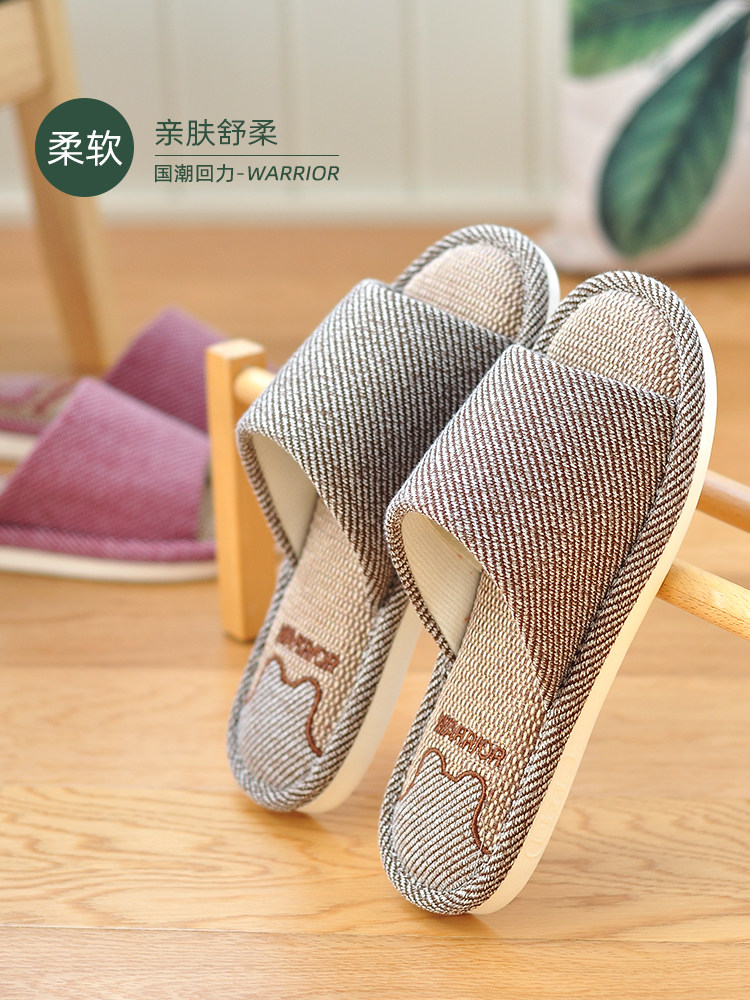 春秋亚麻拖鞋 居家棉麻防滑木地板四季 托鞋 女家用 室内家居男士