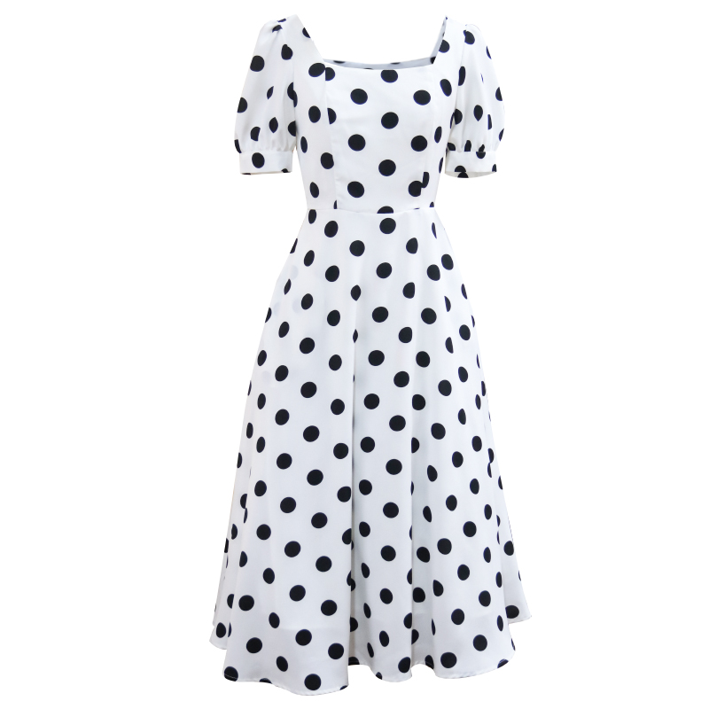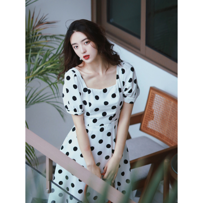 为您提供商品高级感气质显瘦方领复古黑波点温柔风初恋裙子 白色连衣裙女夏季的详细介绍,