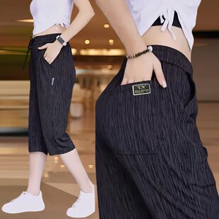 潮流弹力休闲裤 清仓捡漏冰丝裤 宽松直筒七分裤 运动裤 子女夏季 薄款由