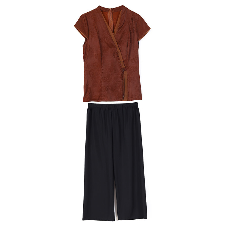 为您提供商品桑蚕丝花罗套装 真丝衬衣两件套香云纱上衣女阔腿裤 夏季 短袖 妈妈装的详细介绍,