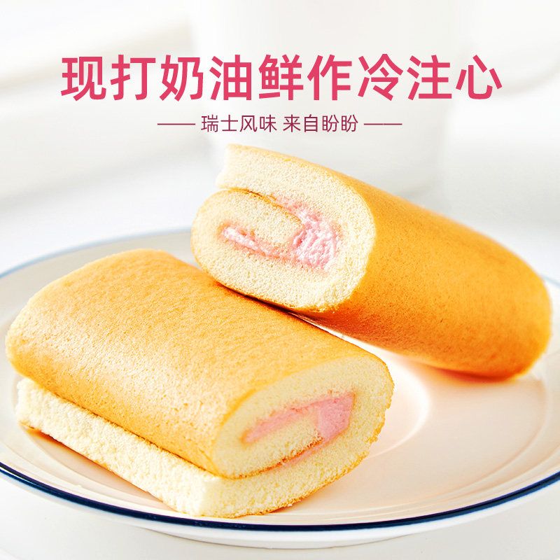 盼盼瑞士卷草莓味夹心手撕面包整箱早餐水牛奶蛋糕点心休闲零食品由
