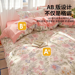 小清新印花超柔纯棉抑菌多用被套床品套件 雅芳婷全棉四件套床笠款