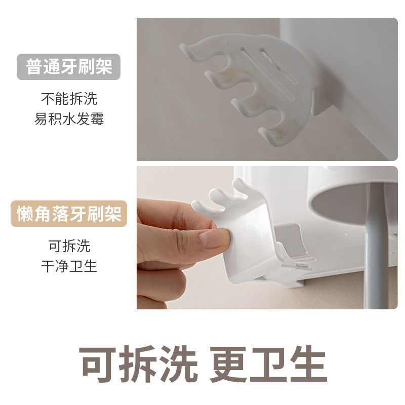 免打孔卫生间牙杯漱口杯架子多功能收纳筒 懒角落牙刷置物架壁挂式