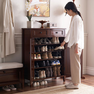 柜门厅柜鞋 架对开门玄关门厅隔断柜 家用门口全实木鞋 和年美家美式
