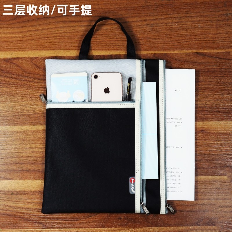 得力文件袋学科袋科目分类袋拉链袋大容量学生双层资料书本学生课本手提拎网纱分科书袋a4试卷收纳袋