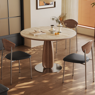 全托底板岩板餐桌小户型家用中古复古风圆桌洽谈桌椅组合 帕沙曼