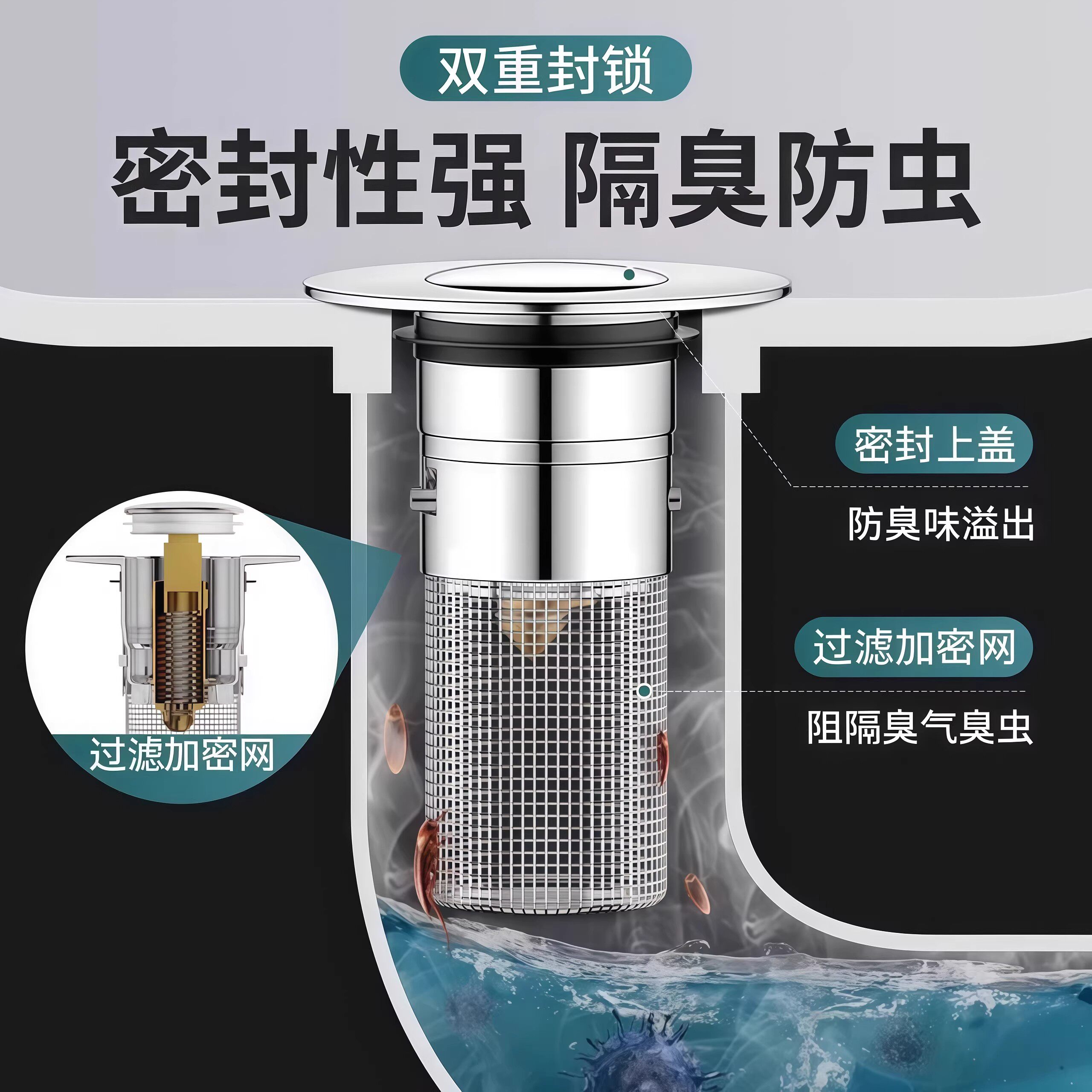 为您提供商品洗脸盆漏水塞洗面盆弹跳芯下水器防虫防臭防堵洗手池过滤按压网芯的详细介绍,