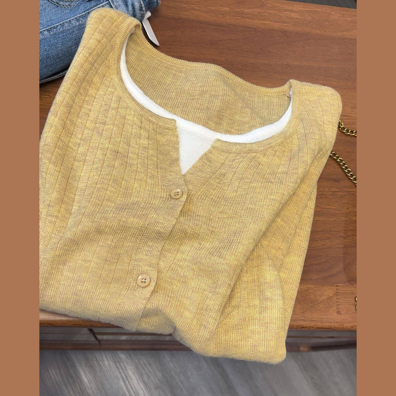 超好看日光黄针织衫 新款 假两件显瘦打底穿搭长袖 上衣 女2025春秋季