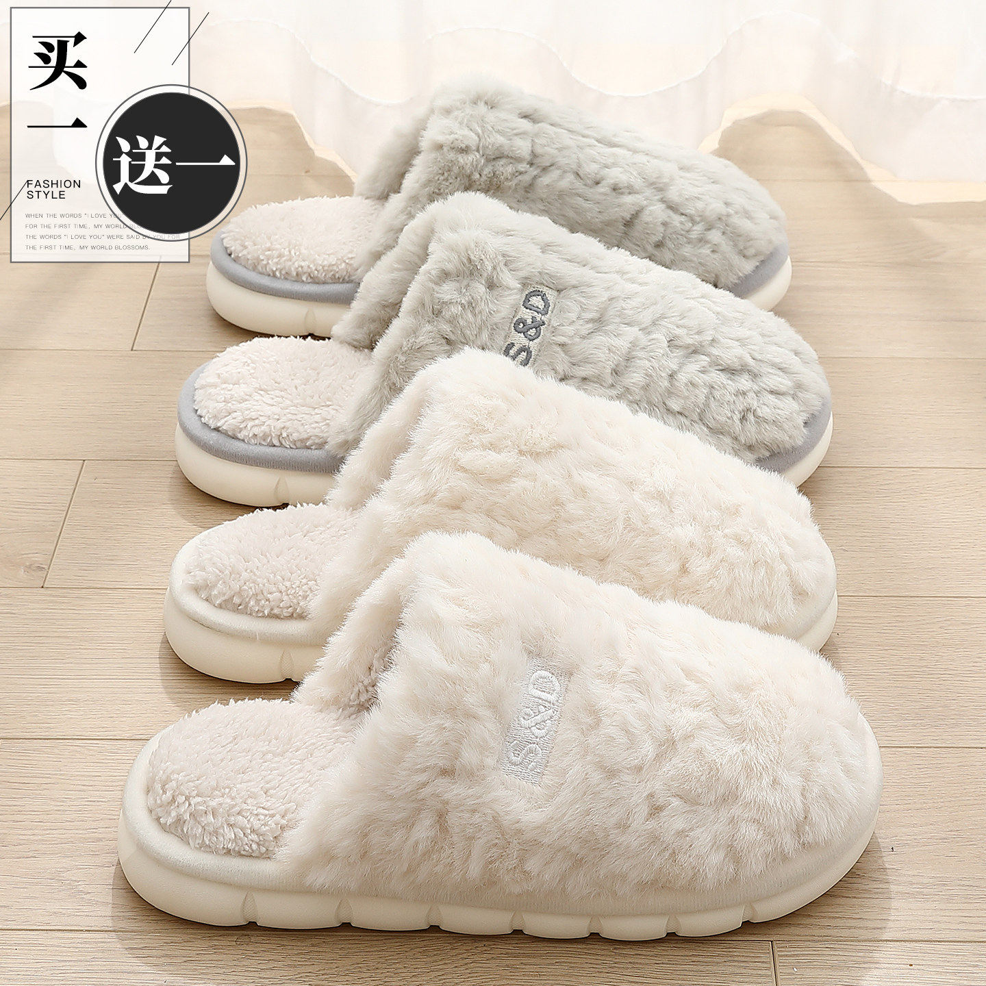 为您提供商品2026新款 室内家居情侣加毛绒棉拖男 女士冬季 买1送1保暖静音棉拖鞋的详细介绍,