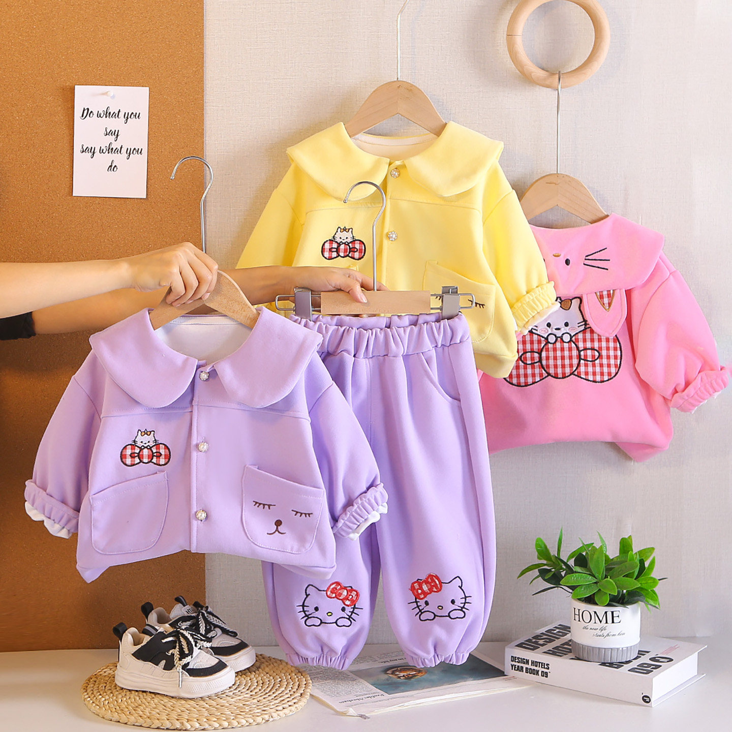 为您提供商品2026新款 娃娃领洋气时髦女宝宝休闲外套 女童春秋可爱卡通两件套装的详细介绍,