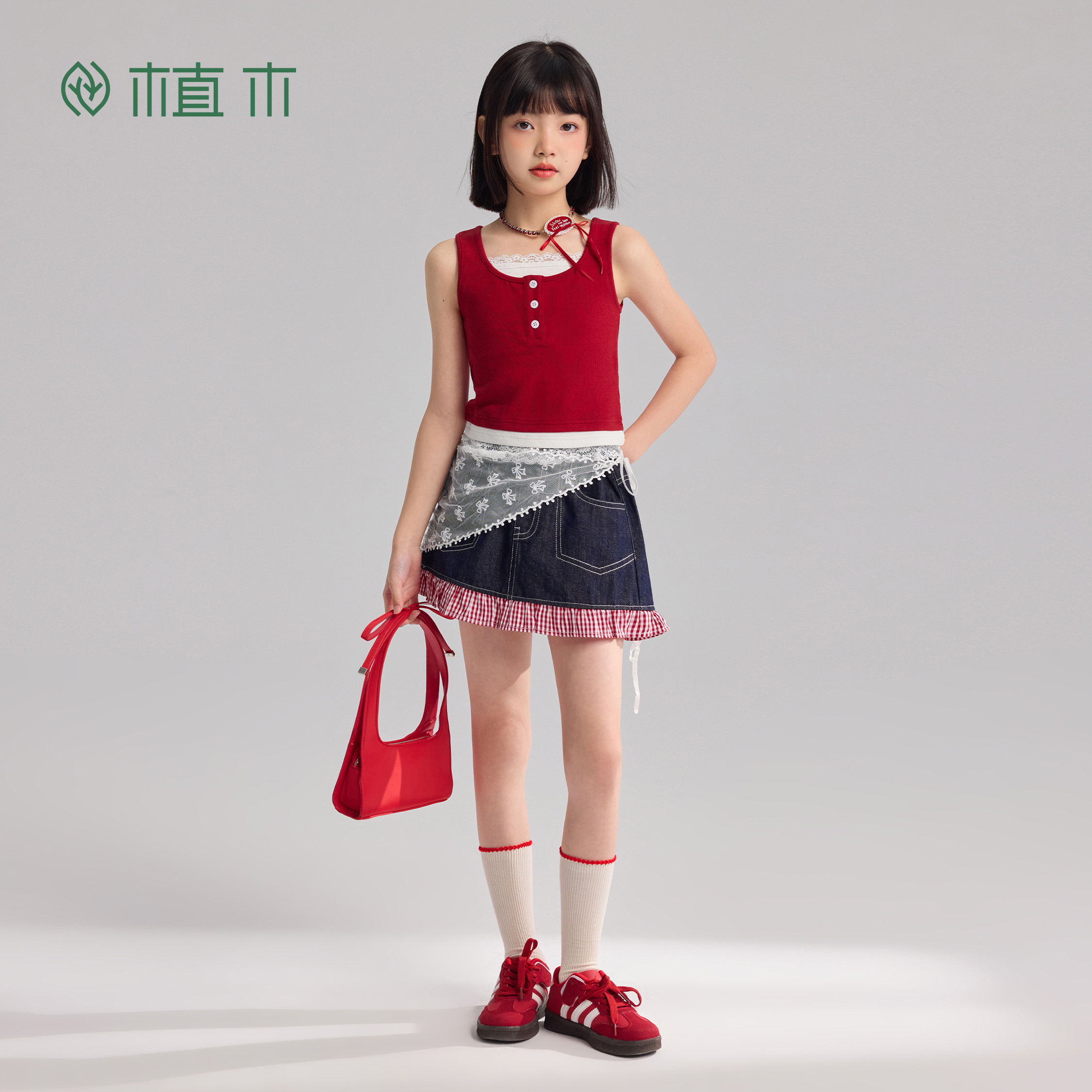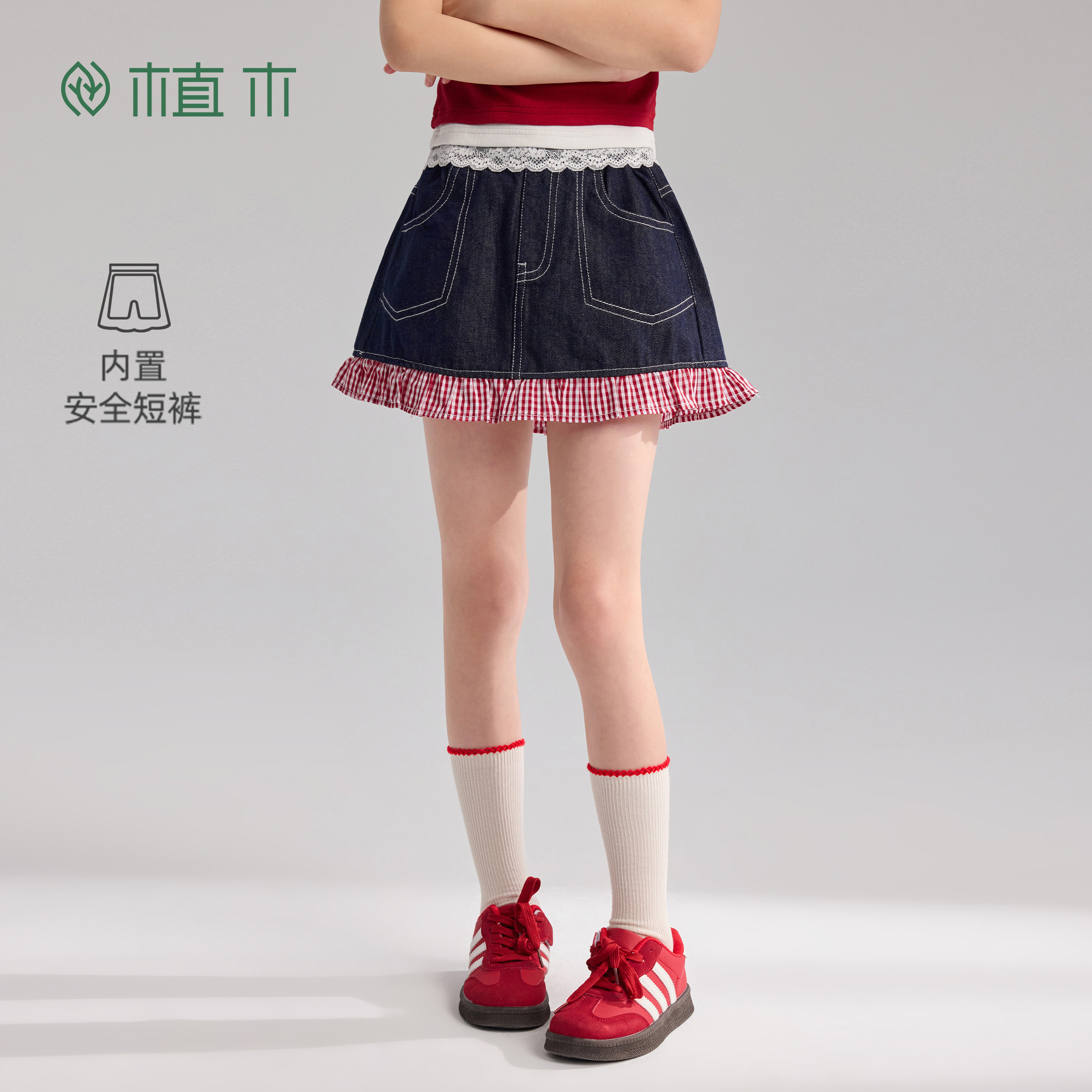儿童半身裙女童短裙2026春夏新款 植木 安心牛仔蓝 含安全裤 童装