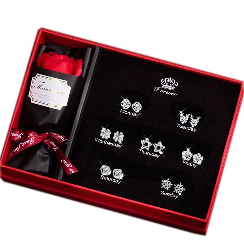 为您提供商品感轻奢生日情人节礼物送女生 耳饰925纯银一周耳钉礼盒套装的详细介绍,