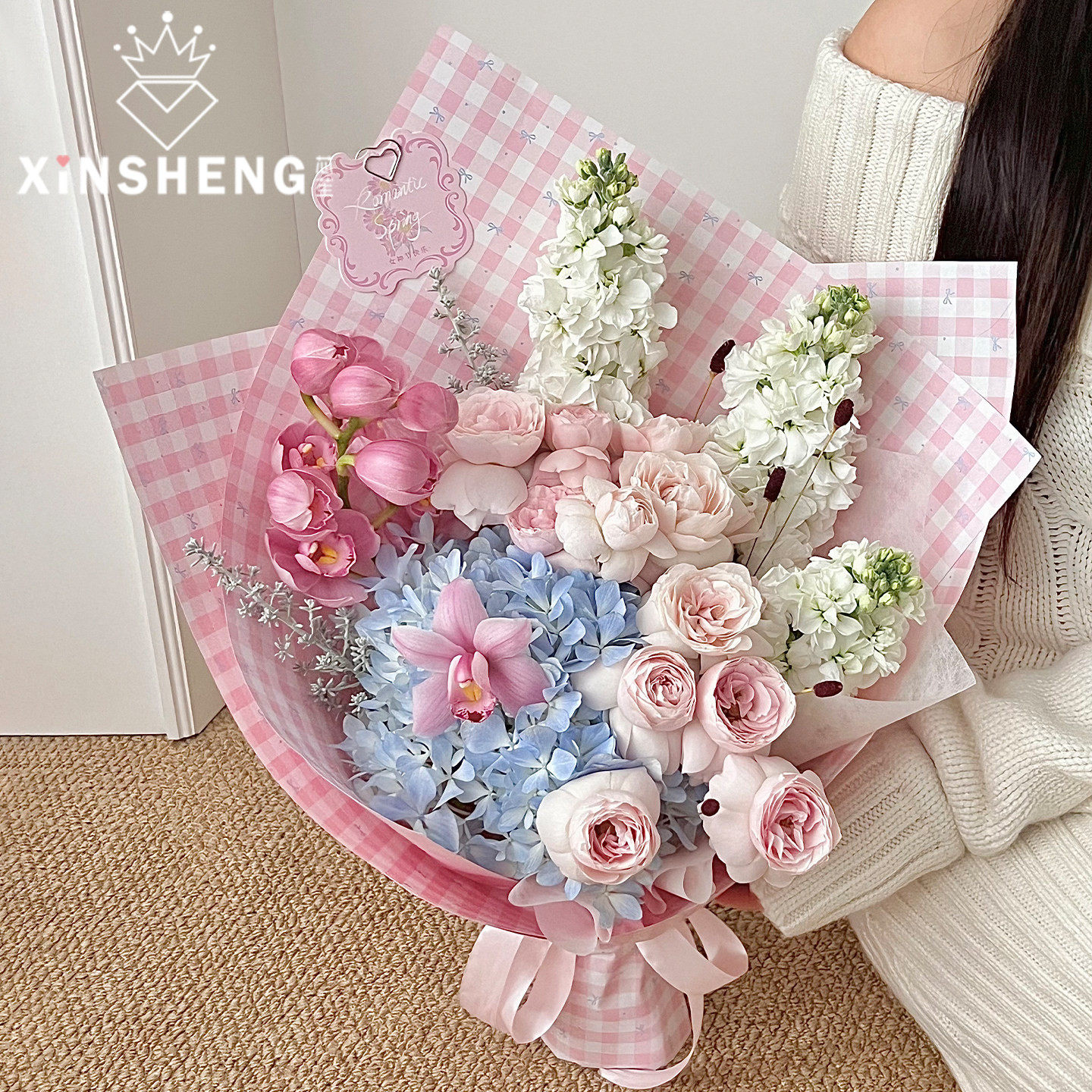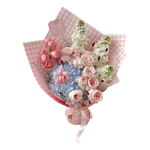 芯苼 纸鲜花花束手工diy浪漫彩色格纹花艺包花纸 原创小花格·包装由