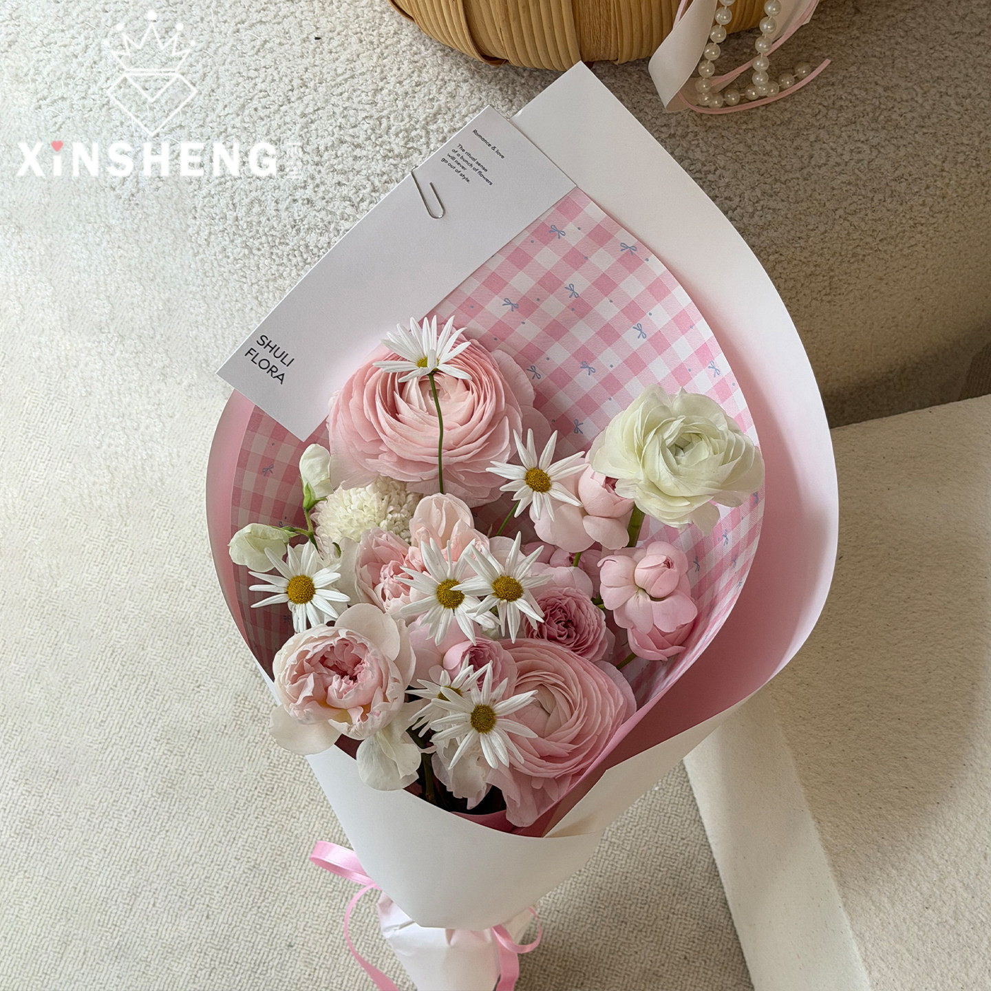 芯苼 纸鲜花花束手工diy浪漫彩色格纹花艺包花纸 原创小花格·包装