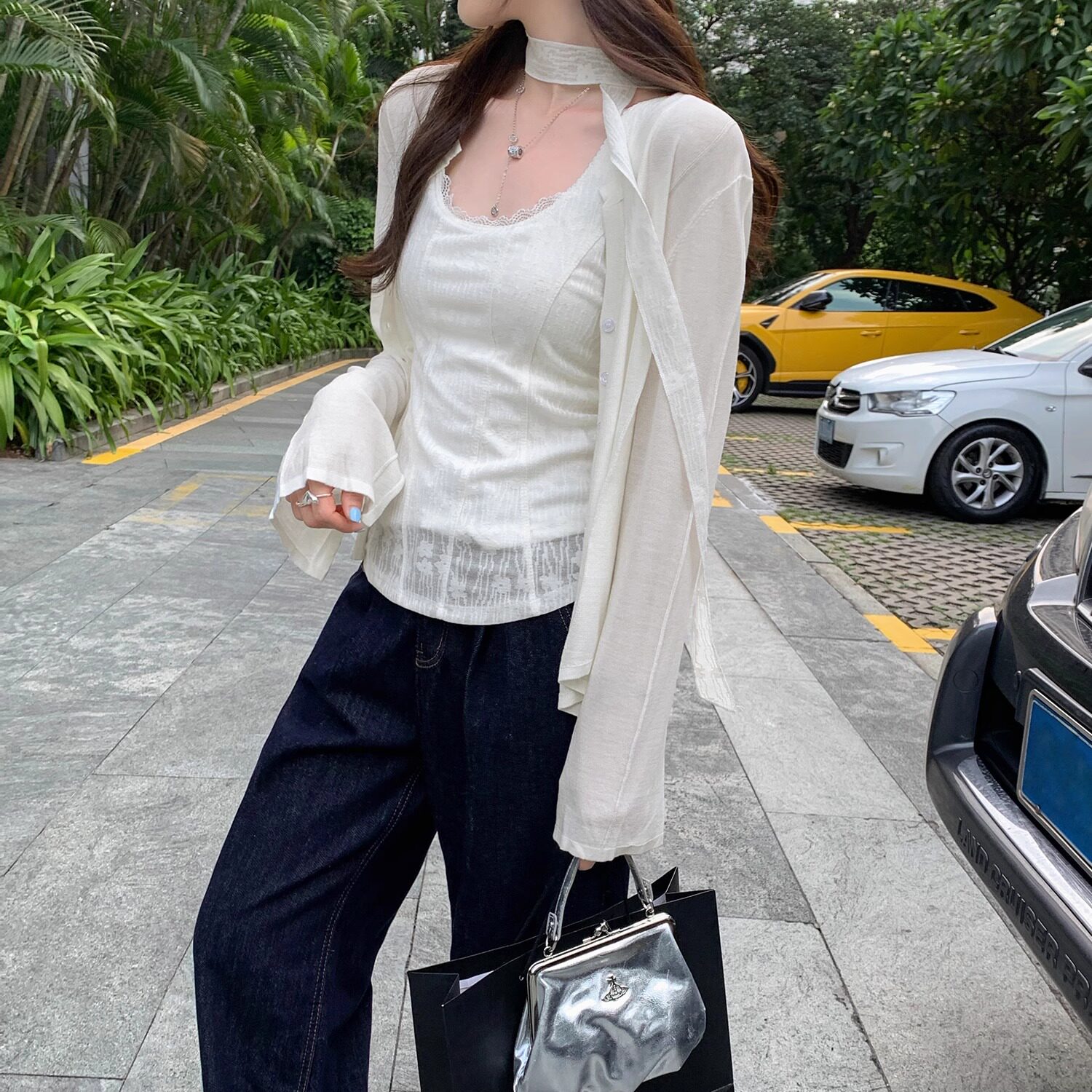 外穿高级感飘带无袖 上衣 新款 设计感蕾丝花边吊带背心女2026春夏季由