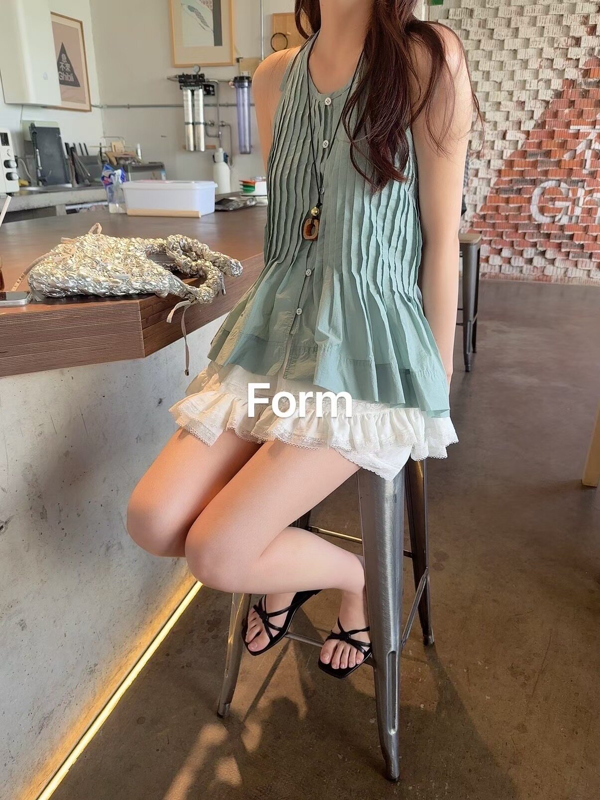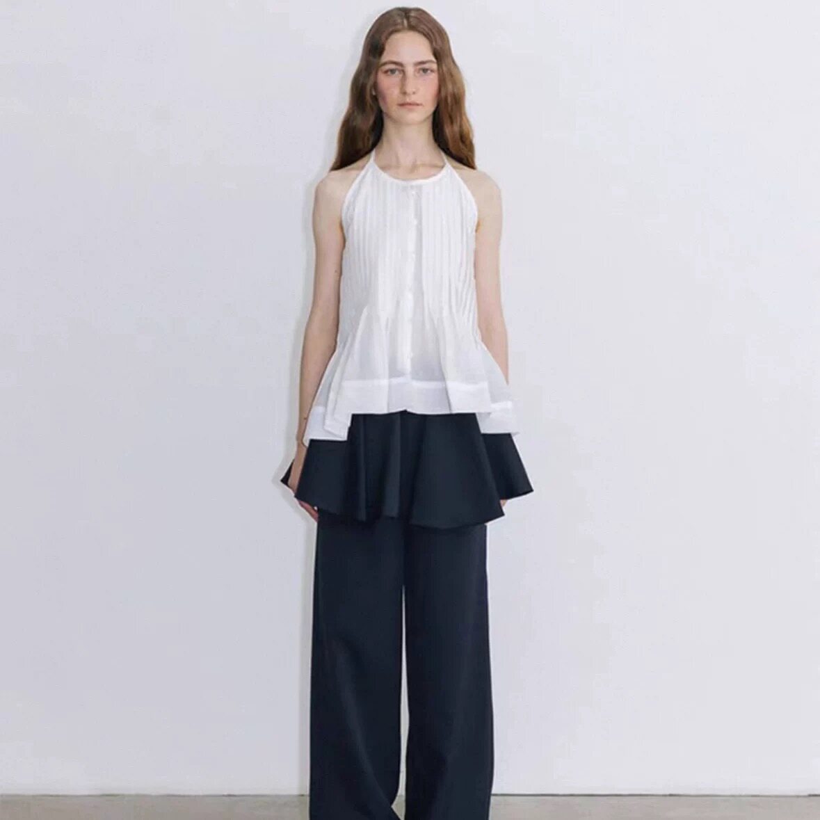 度假上衣女 Atelier褶皱挂脖系带夏季