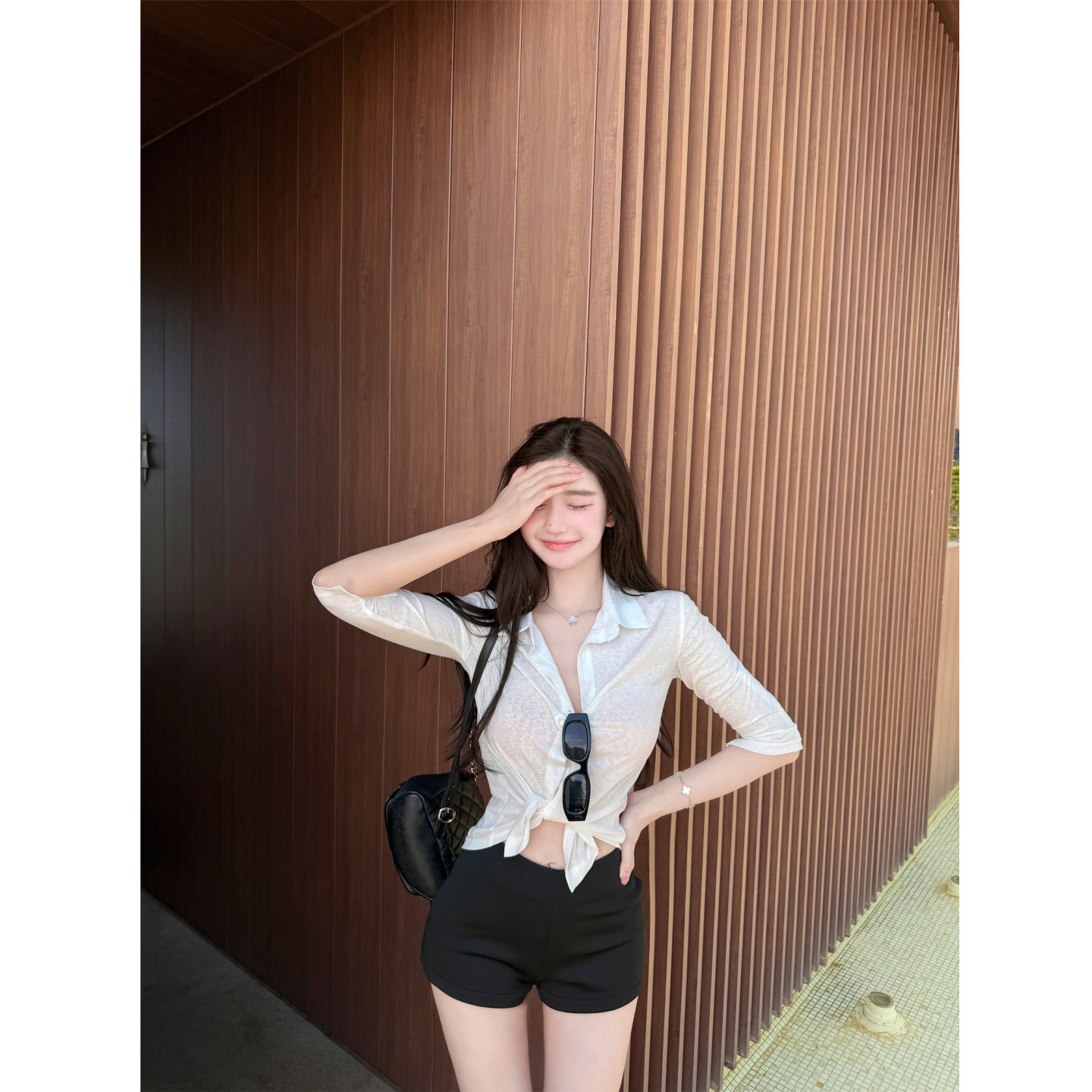 女春季 FASC自制 高腰西装 白色短裤 小个子 打底外穿黑色显瘦热裤