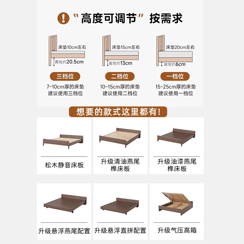 现代简约实木床1.8米主卧双人床1.5M单人经济型高箱储物大床