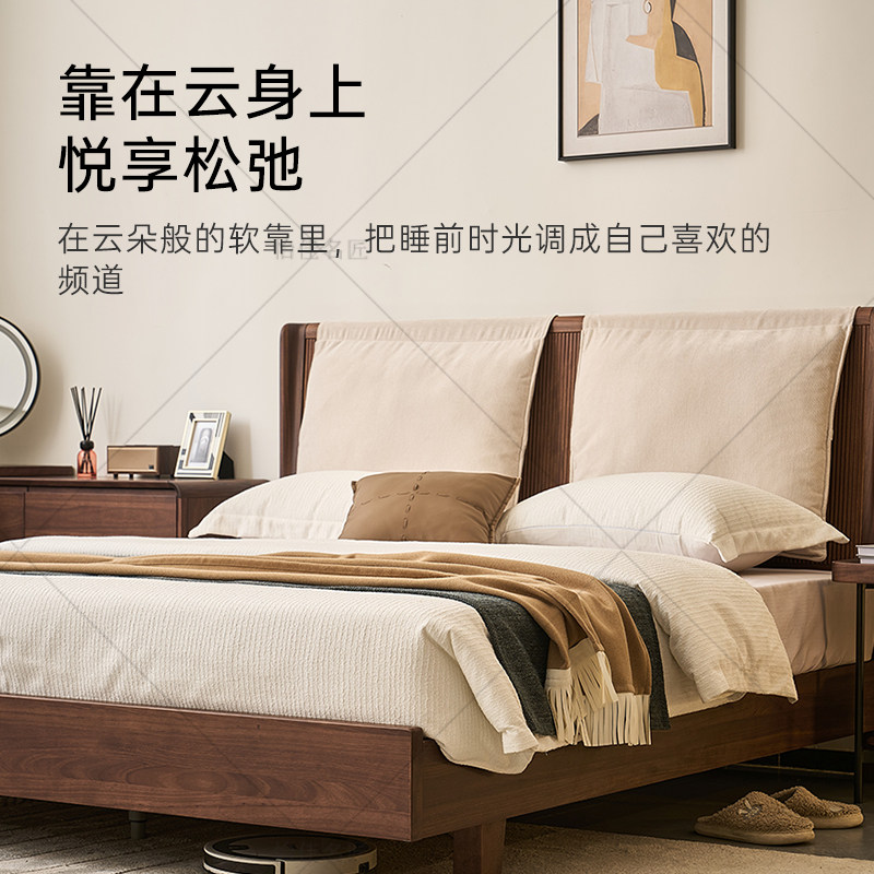 为您提供商品黑胡桃木全实木床可拆软靠大象耳朵双人床中古风主卧榫卯工艺的详细介绍,