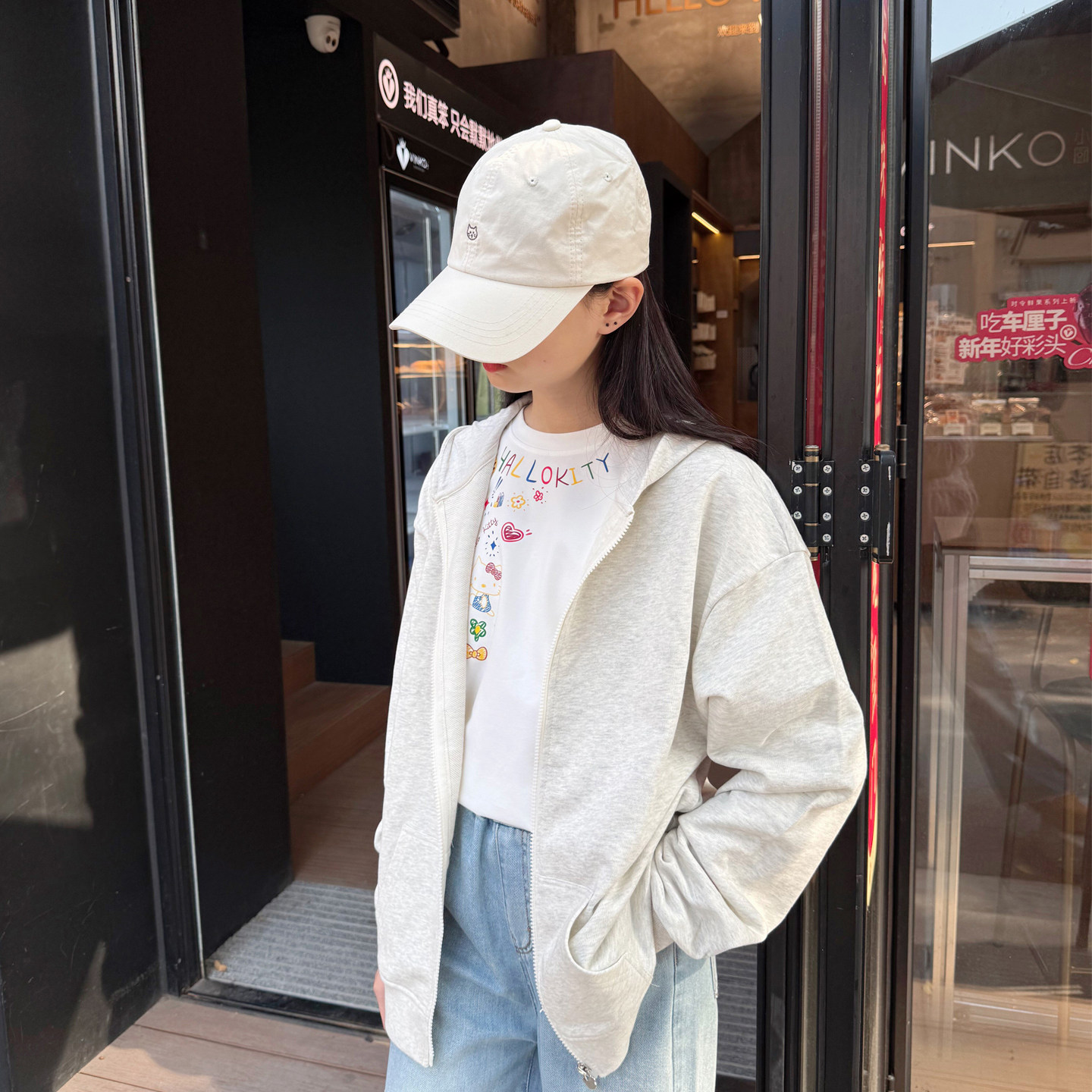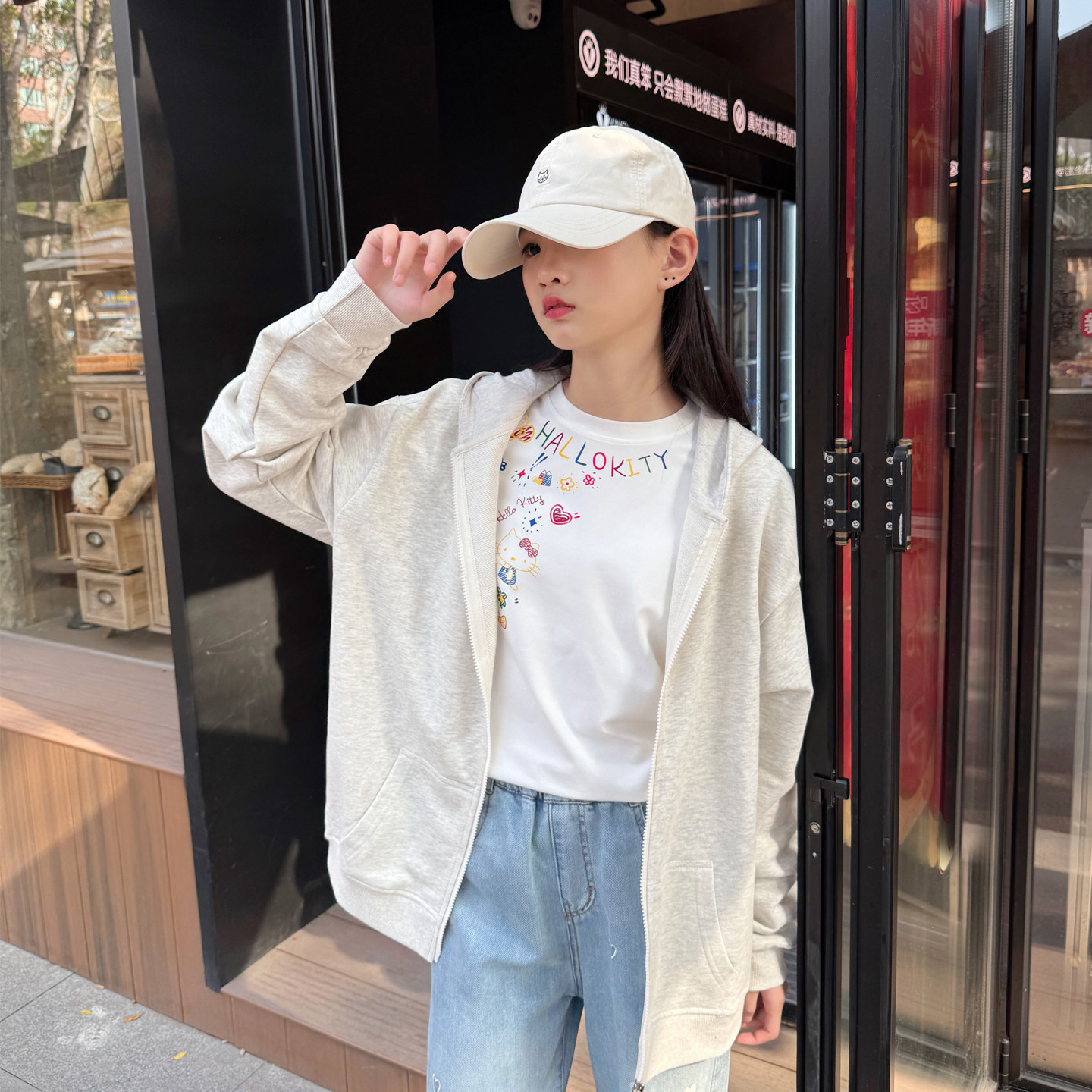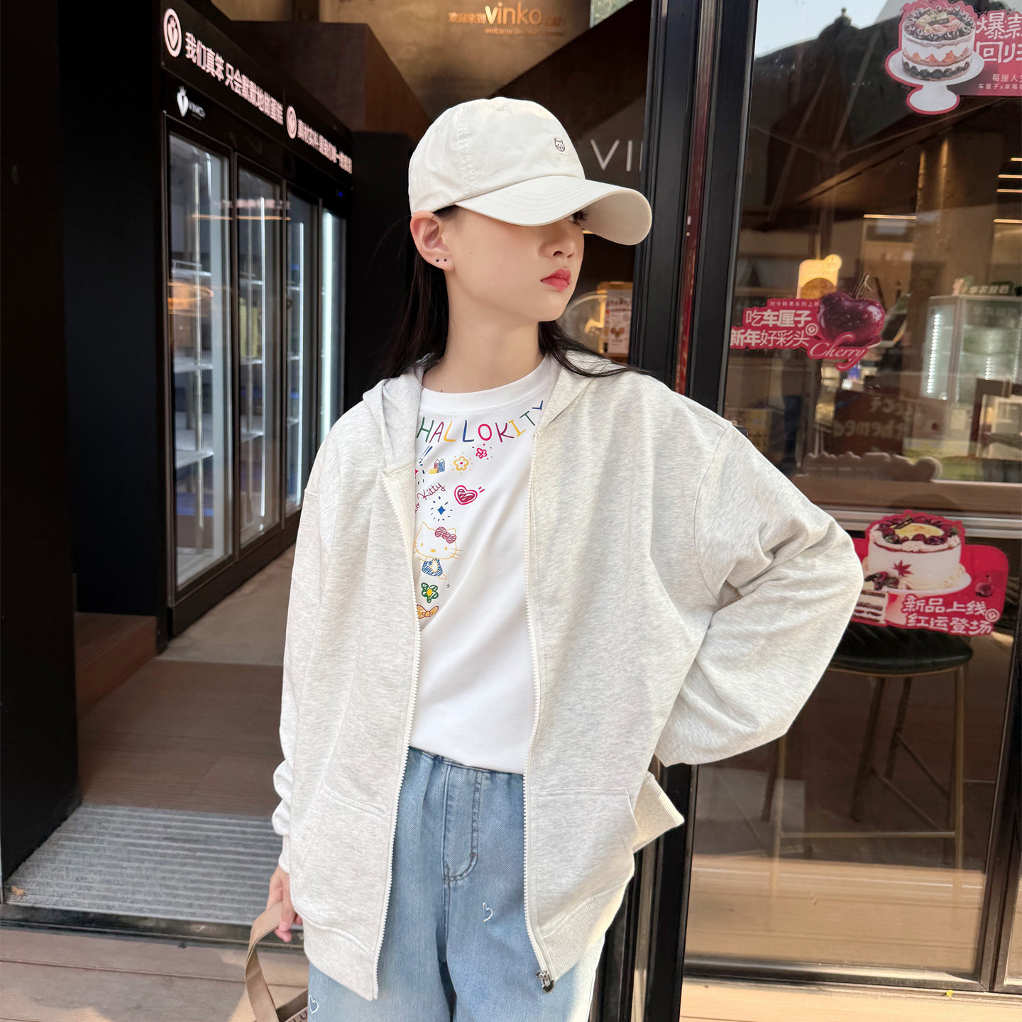 高品质纯棉女童春秋款 2026春装 中大童拉链开衫 纯色上衣 外套薄款