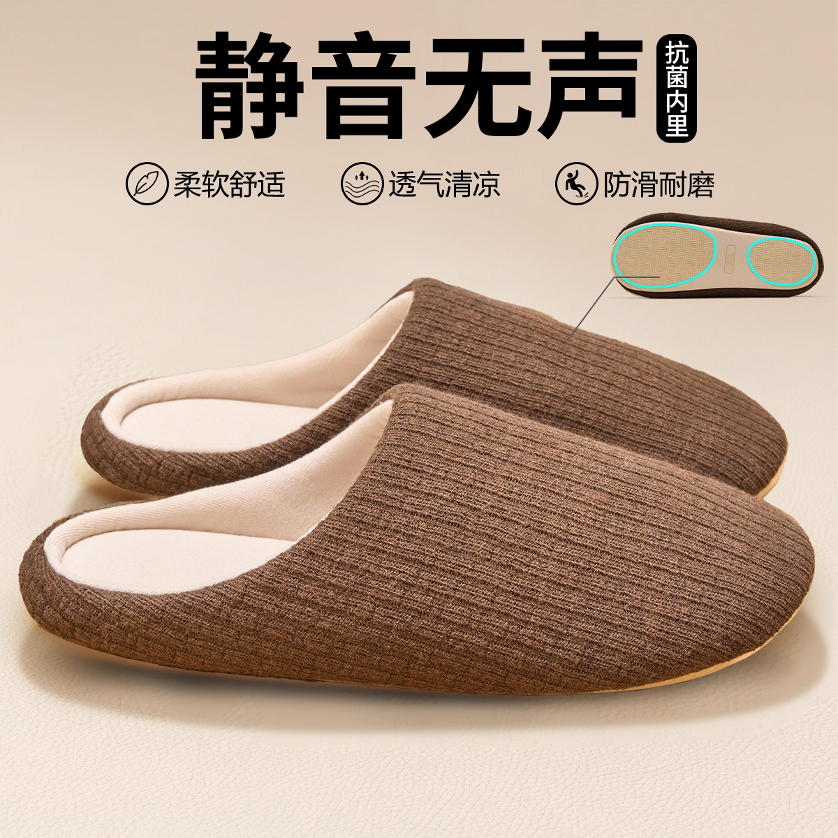 室内家居月子防滑四季 日式 无声静音拖鞋 女款 秋冬 木地板软底棉拖鞋