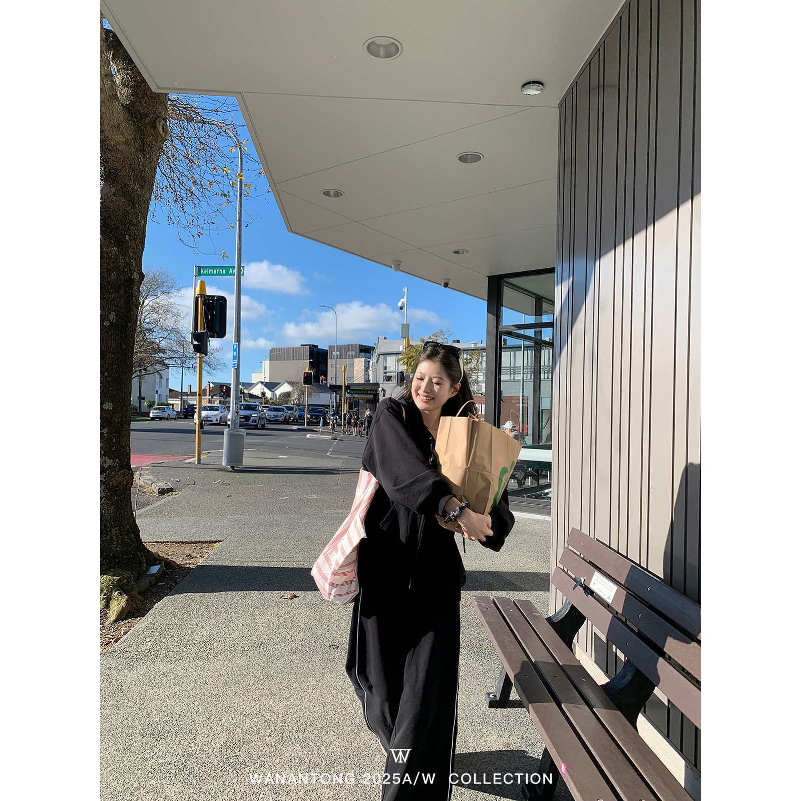 卫裤 WANANTONG 套组女秋 卫衣外套 轻欧美斜肩 lazy chic舒适至上