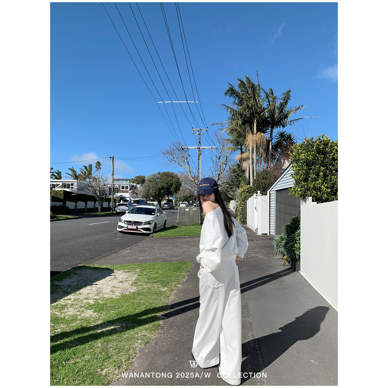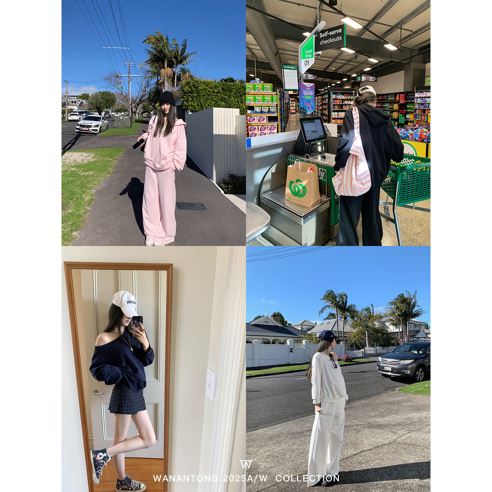卫裤 WANANTONG 套组女秋 卫衣外套 轻欧美斜肩 lazy chic舒适至上由