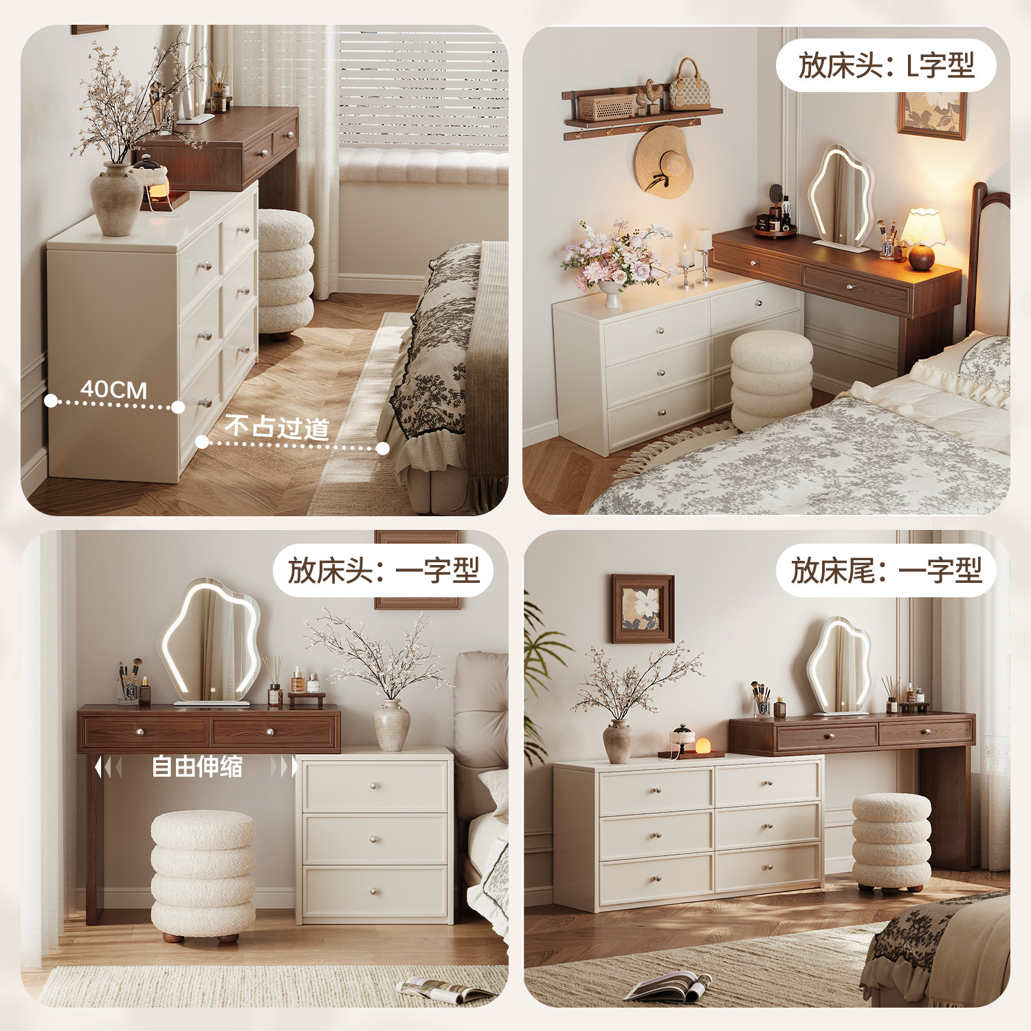 中古奶油风梳妆台卧室现代简约斗柜收纳柜一体床尾化妆桌 2026新款