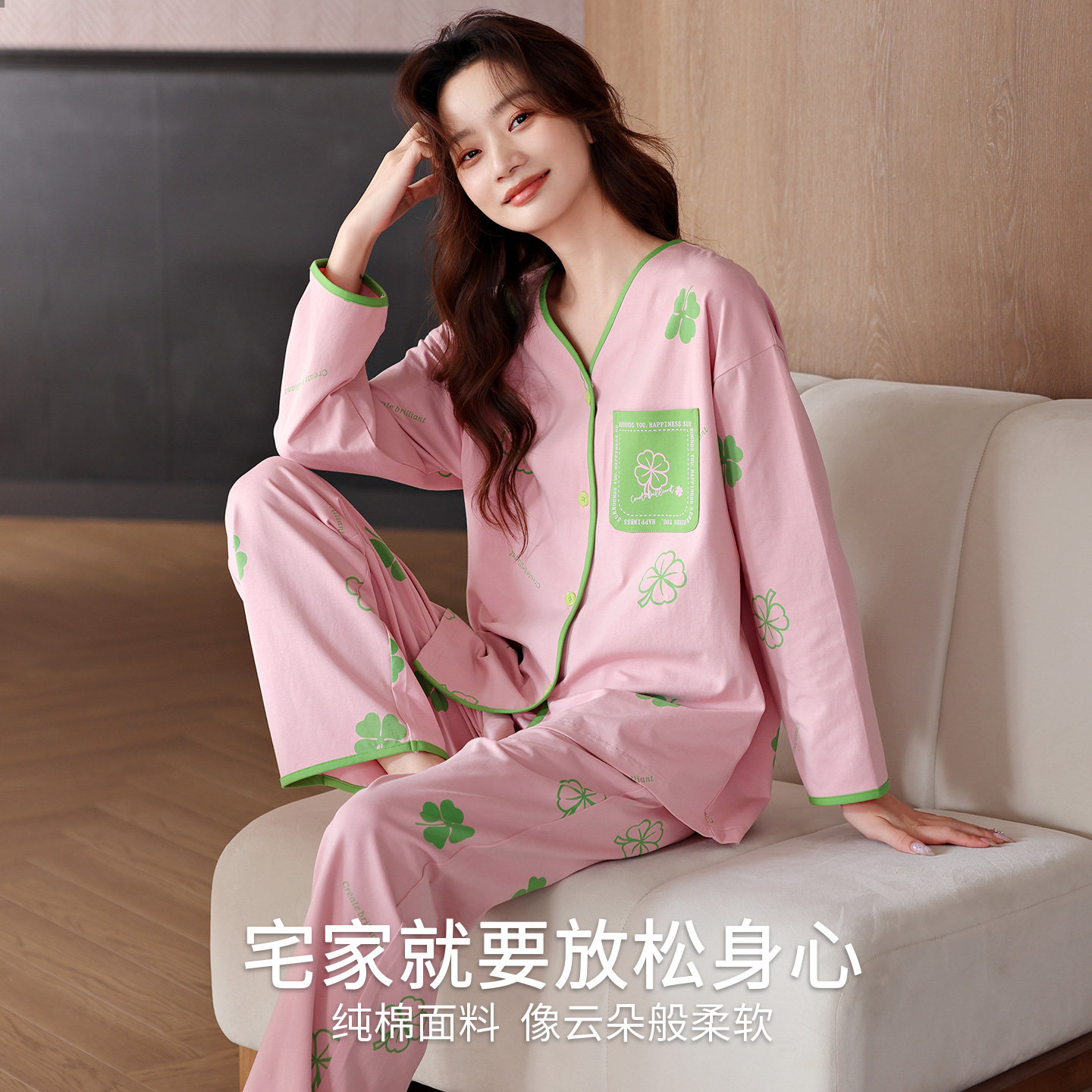 草本西子长袖 新款 春秋季 纯棉女士小花可外穿家居服冬天 睡衣女款