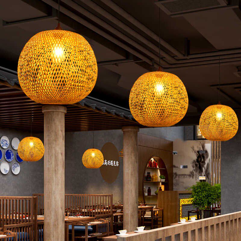 餐厅竹编灯日式 编织竹编吊灯藤编 禅意茶室民宿书房竹艺灯罩新中式由