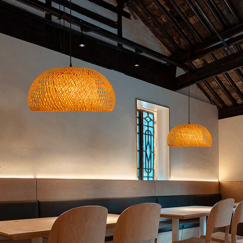 餐厅竹编灯日式 编织竹编吊灯藤编 禅意茶室民宿书房竹艺灯罩新中式