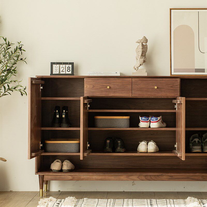 为您提供商品北欧实木黑胡桃木大容量鞋 简约进门实木柜 柜门厅玄关隔断柜日式的详细介绍,