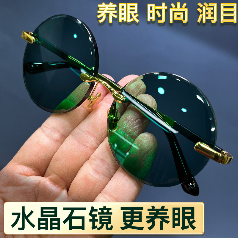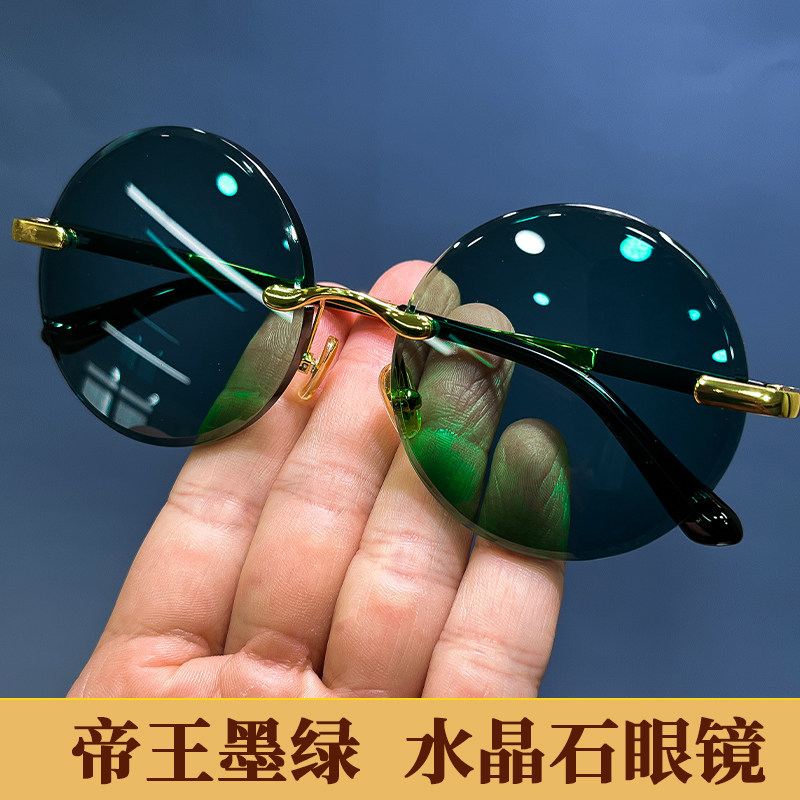 水晶石镜墨绿水晶眼镜石头眼镜圆形太阳镜清凉养眼镜 高档圆款由