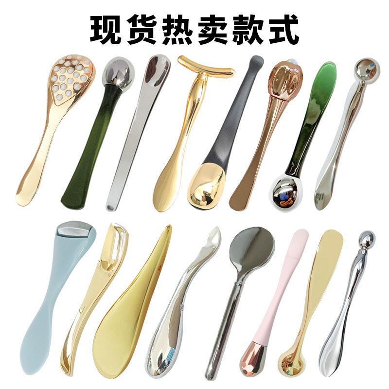 眼部按摩滚珠面霜挖勺取眼霜金属勺护肤品双头挑棒面膜银勺化妆品
