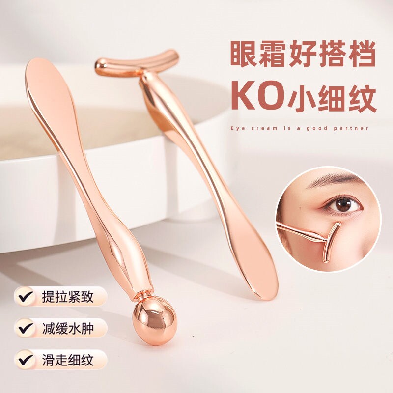 眼部按摩滚珠面霜挖勺取眼霜金属勺护肤品双头挑棒面膜银勺化妆品由