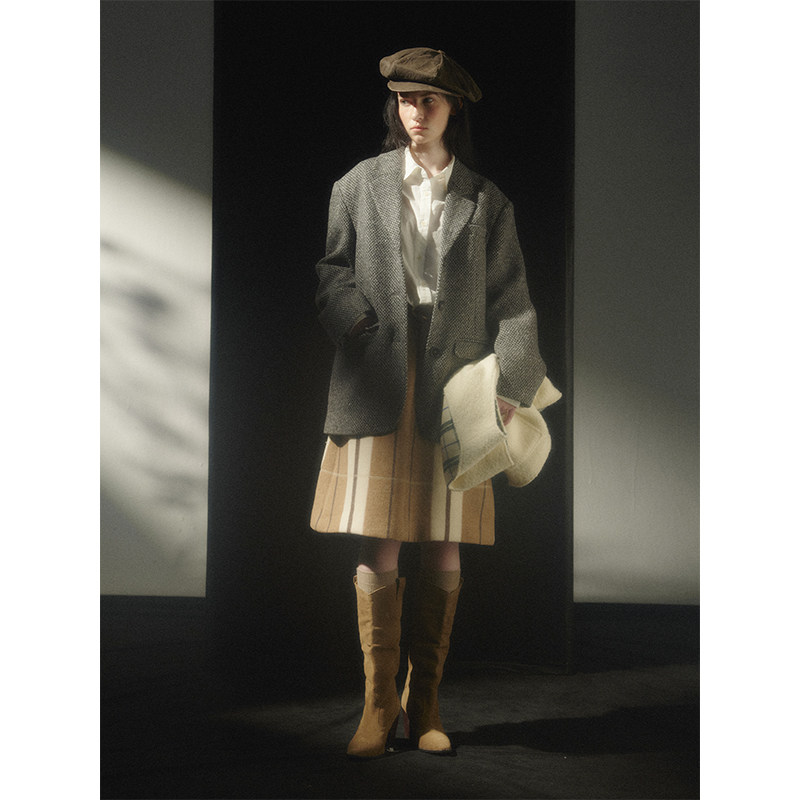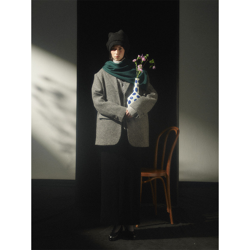 Cycle 羊毛混纺 复古宽松精裁挺阔粗花呢休闲西装 外套女 Document