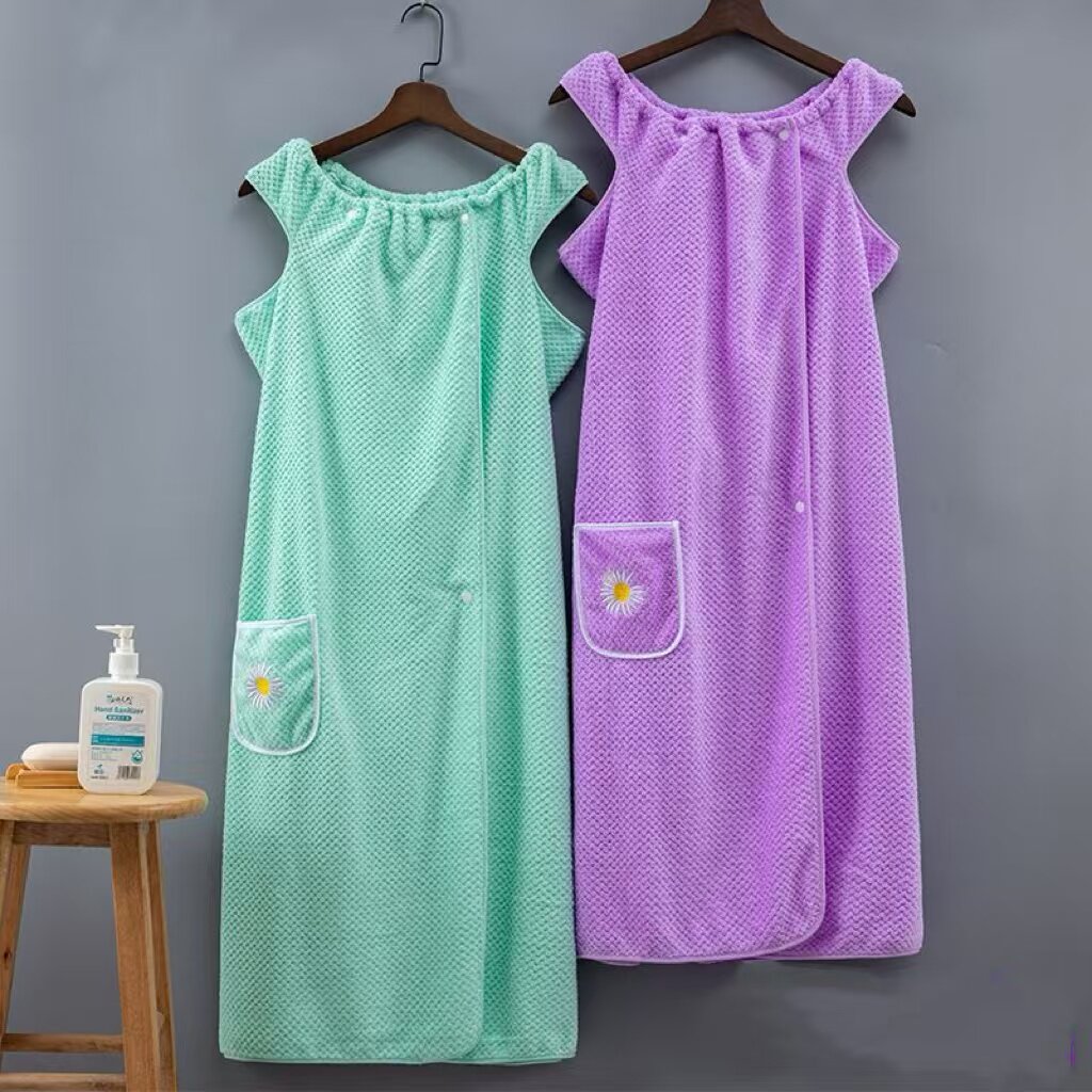 为您提供商品比纯棉吸水速干大号浴袍 浴巾可穿可裹大人女家用洗澡吊带浴裙长款的详细介绍,